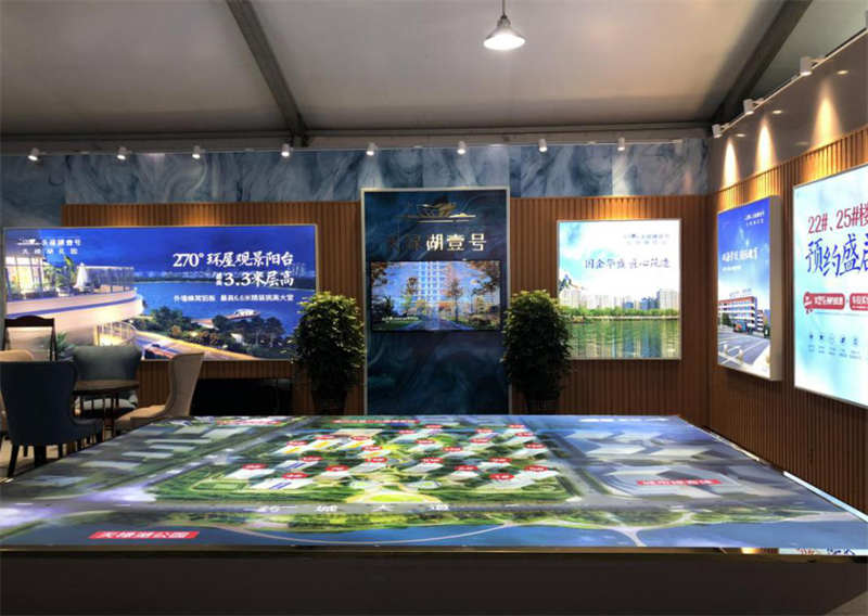 天祿湖花園項目位于展會中心舞臺東側A7展位,位置較好。華盛公司精心布置展會現(xiàn)場,通過內部墻面燈箱、廣告機、三維動畫等,展示品牌美譽度、樹立項目高端形象、傳遞項目賣點優(yōu)勢,同時抓住房博會契機銷售一期房源,宣傳二期開盤信息,和二期加推信息。